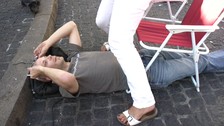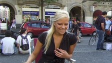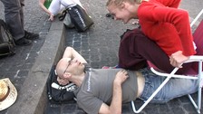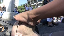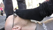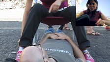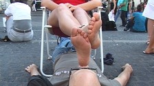 unter füßen: amsterdamkann man etwas, was schon ziemlich abgefahren gewesen ist, noch besser machen? ja, man kann! vier lange jahre sind seit dem düsseldorf-projekt vergangen und nicht nur ich habe mir eine fortsetzung gewünscht. amsterdam stand als ort für den dreh schon lange fest, also sind wir vor zwei wochen zu fünft dahin gefahren. zusammen mit jutta, julie, michael und paul haben wir nun einen spielfilm gedreht, der seinesgleichen sucht. mitten auf dem "dam", dem zentralen hauptplatz amsterdams, haben wir mit vier kameras insgesamt 25 frauen gefilmt, die sichtlich ihren spaß hatten, mir ihre füße aufs gesicht zu stellen. daß wir nebenbei eine zusätzliche touristenattraktion gewesen sind, brauche ich wohl nicht zu erwähnen... :-) an der stelle möchte ich mich zuerst bei allen beteiligten bedanken, die mit mir den film realisiert haben. der größte dank geht allerdings an die tollen 25 frauen aus aller herren länder - diesmal war es echt international. den vorschauclip könnt ihr euch hier in bester qualität herunterladen (73 MB). als vorschau auch bei youtube zu sehen -> watch at youtube dieses video gibt es entweder als DVD oder als windows-media-video (wmv) zum download im shop. länge: 77 minuten, mit originalton.