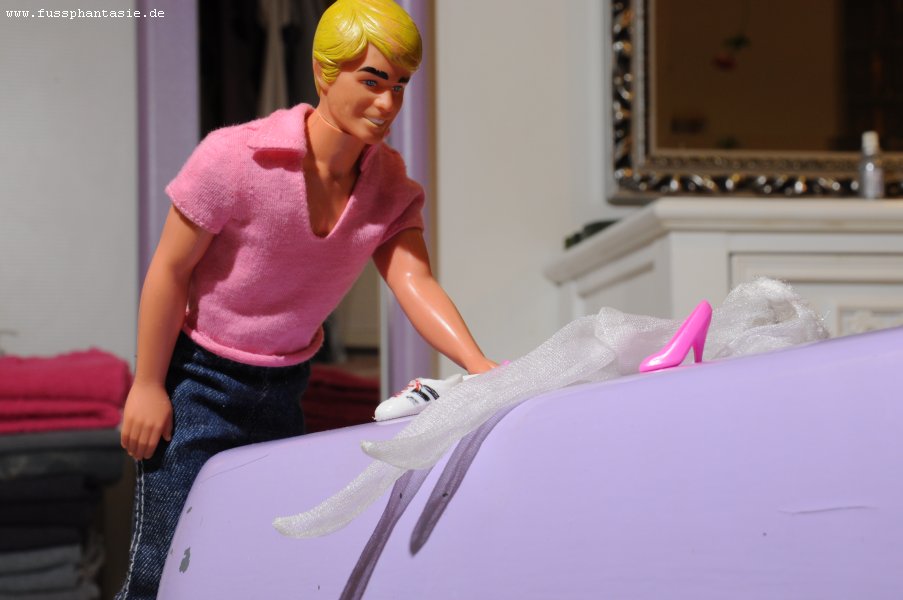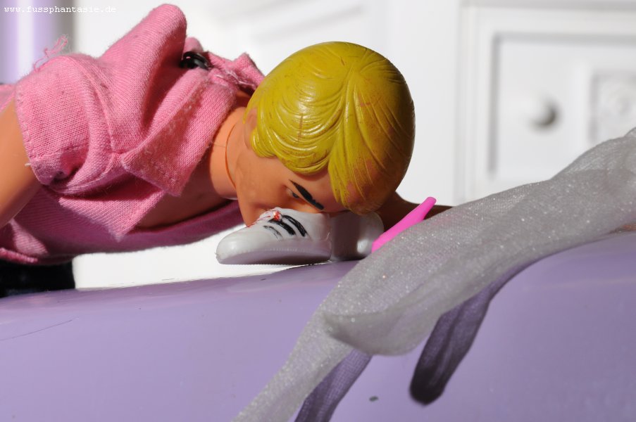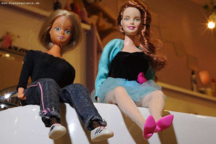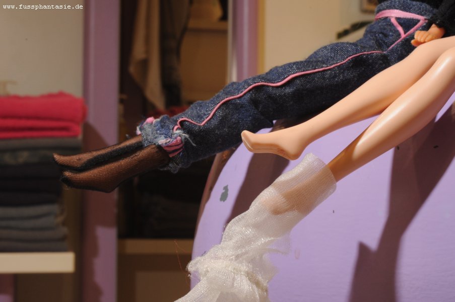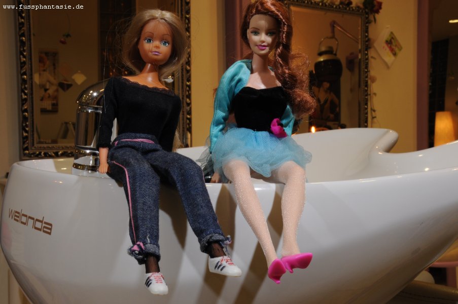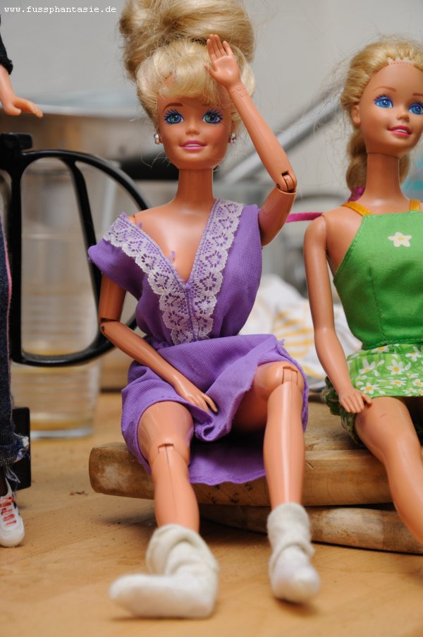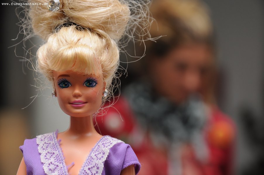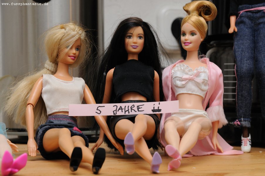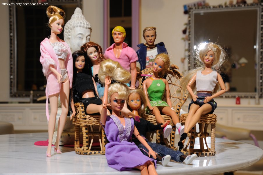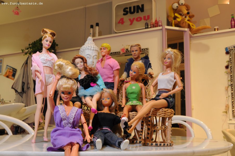 barbie's birthday presentmit dieser fotoserie habe ich mir einen lang gehegten wunsch erfüllt. als bekennender barbie-fan und fußliebhaber wollte ich unbedingt mal süße fußfetisch-fotos machen, die einen zum schmunzeln aber auch zum phantasieren anregen. als location für das shooting habe ich "birgit's hair shop" in ehrenfeld gewählt, ein mit liebe und herzblut von birgit gestalteter friseurladen, in dem man auch auf sonnenbänken urlaub machen kann. danke an dieser stelle an birgit! meine eigenen barbies wurden mit ![]() zum fünften geburtstag ist das für fussphantasie das passende geschenk und für euch habe ich als kleines dankeschön ein zip-archiv mit allen fotos zusammengestellt, welches ihr euch hier herunterladen könnt. ich wünsche euch viel spaß mit den fotos und möchte mich ganz herzlich für eure treue und eure unterstützung in den letzten fünf jahren bedanken! vor dem shooting die sieben mädels waren total aufgeregt. zwar hatten manche von ihnen schon erfahrungen mit fotoshootings gemacht, aber das projekt von david war etwas neues. zudem wußte keine, welche beiden männer auf sie im hair shop warteten, denn die mädels kannten ken und ben bisher nur von fotos aus der model-kartei.