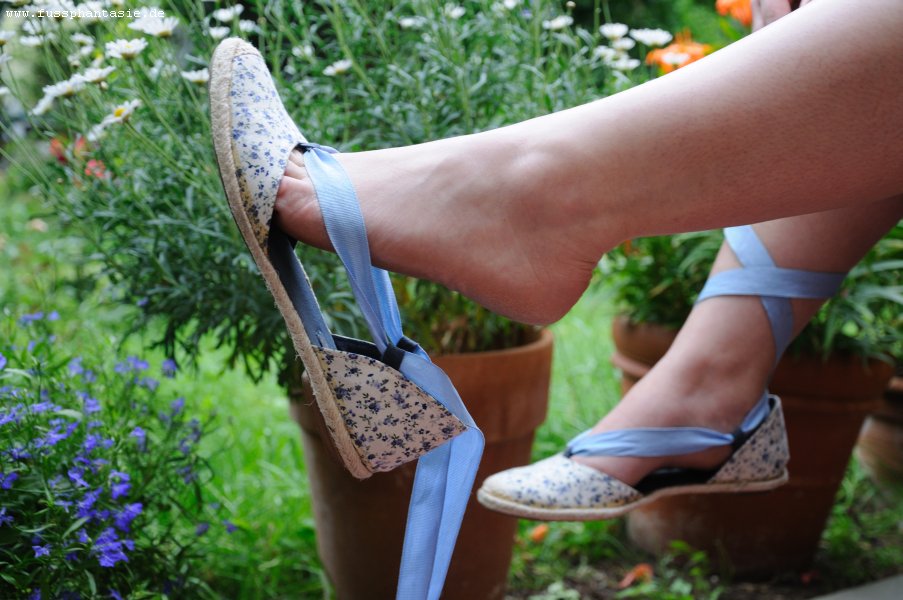 blütenzauberihr durftet wählen und wir haben euch erhört: marie debutiert in ihrer ersten serie mit weißen stoffschuhen, die an eine mischung aus ballerinas und espandrillos erinnern. dazu gehören blaue bändchen, die man sich gekonnt um die wade binden kann. leider hatten wir einen bedeckten himmel, dafür sorgt marie mit ihrem lächeln für strahlenden sonnenschein. die blumenkulisse gibts gratis zu den schuhen dazu und auch der silberne zehenring darf nicht fehlen. das ist ein süßer einstand, marie! platz zwei der großen schuhwahl wird natürlich noch folgen, es bleibt also spannend :-) diese serie vom 07.07.2010 enthält 60 aufnahmen. die ersten sechs bilder könnt ihr vergrößern. die restlichen fotos gibt es entweder auf CD oder als zip-datei zum download im shop.