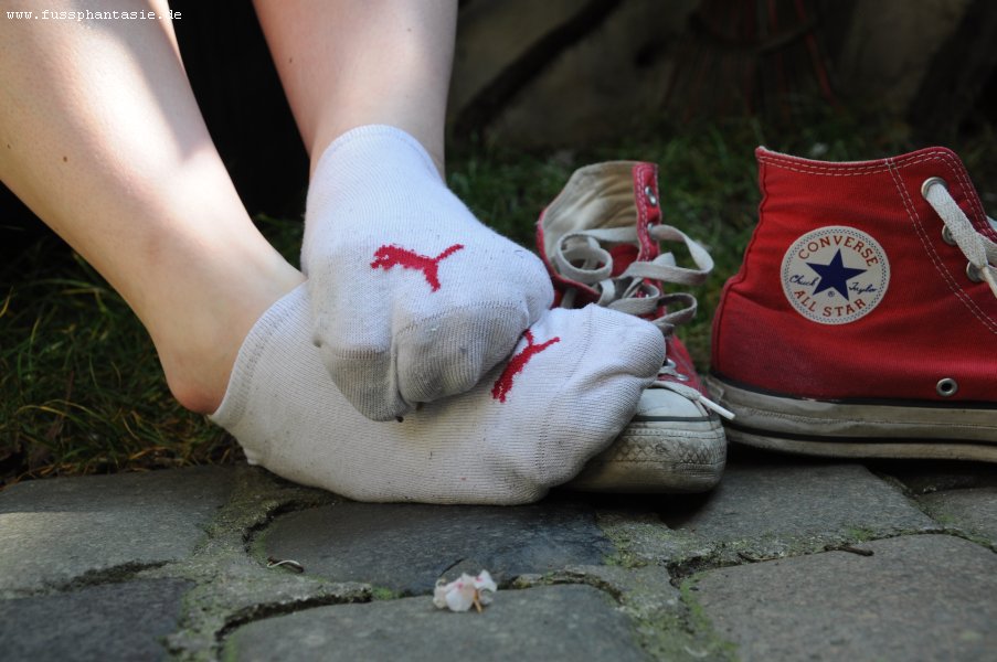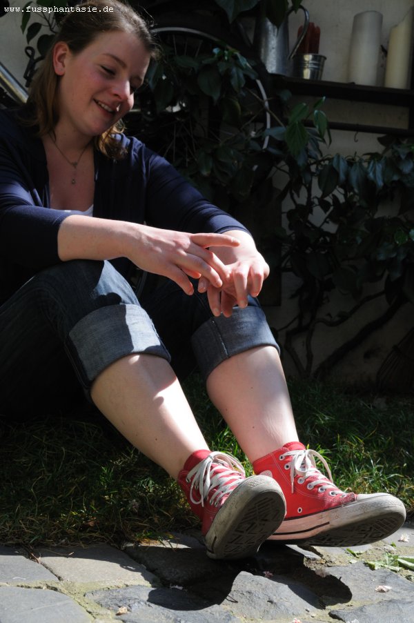 chuck norris braucht keine chucks...denn die chucks werden zu ihm... :) vermutlich würde sich chuck norris als roter chuck bei malina auch sehr wohlfühlen, denn sie hat ihre converse allstars schon recht lange und ausgiebig getragen, was man nicht nur an den schuhen sieht, sondern auch an den weißen sneakersöckchen von puma, die irgendwie nicht mehr ganz frisch aussehen. man könnte auch sagen: chuck norris braucht gar kein fußfetischist zu sein, denn der fuß läuft so lange auf chuck herum, bis er naß ist. der fuß, nicht chuck... ich hör jetzt mal mit den dummen witzen auf, genießt die neue serie mit malina :D diese serie vom 21.04.2011 enthält 114 aufnahmen. die ersten sechs bilder könnt ihr vergrößern. die restlichen fotos gibt es entweder auf CD oder als zip-datei zum download im shop.
