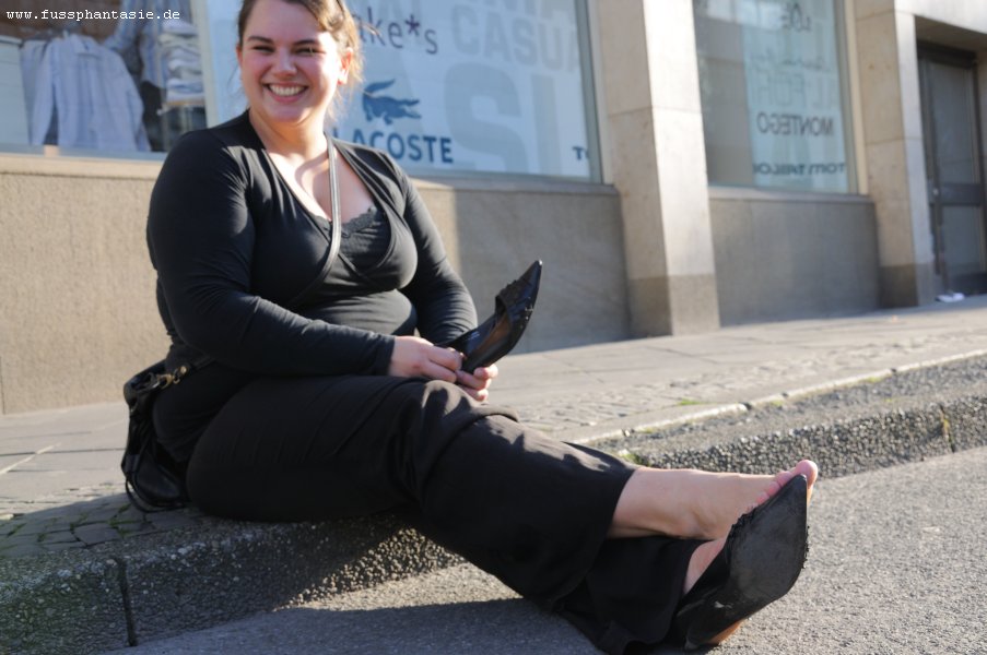 cold play - hot feetich muß ja gestehen, ich habe ein faible für riemchenpumps, wo man vorne die ansätze der zehen erahnen kann.zufälligerweise besitzt carlotta solche schuhe in schwarz und zufälligerweise sind das auch ihre lieblingsschuhe aus england. kein zweifel, diesen schuhen muß ein denkmal gesetzt werden!also sind carlotta und ich ein wenig durch die dortmunder innenstadt gelaufen, haben eis gegessen und nebenbei durfte ich ihre hautfarbenen nylons mit den schwarzen pumps fotografieren. ab und zu hätte ich mir gewünscht, daß es fotos mit ton gibt, denn die kommentare, die carlotta zwischendurch losgelassen hat, waren echt filmreif und hätten eine prima fußerotik-story abgegeben. nur soviel: es war recht feucht und klebrig an der ledersohle... diese serie vom 29.07.2009 enthält 90 aufnahmen. die ersten sechs bilder könnt ihr vergrößern. die restlichen fotos gibt es entweder auf CD oder als zip-datei zum download im shop.
