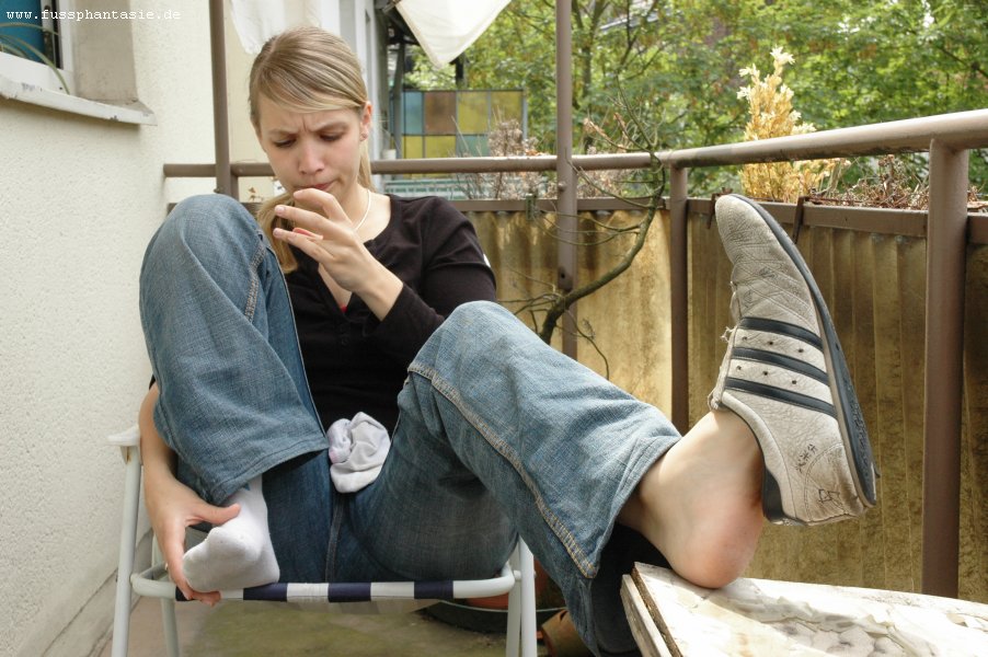 feuchte und süß duftende socken trägt und sie diese natürlich auch noch weiter tragen wird.