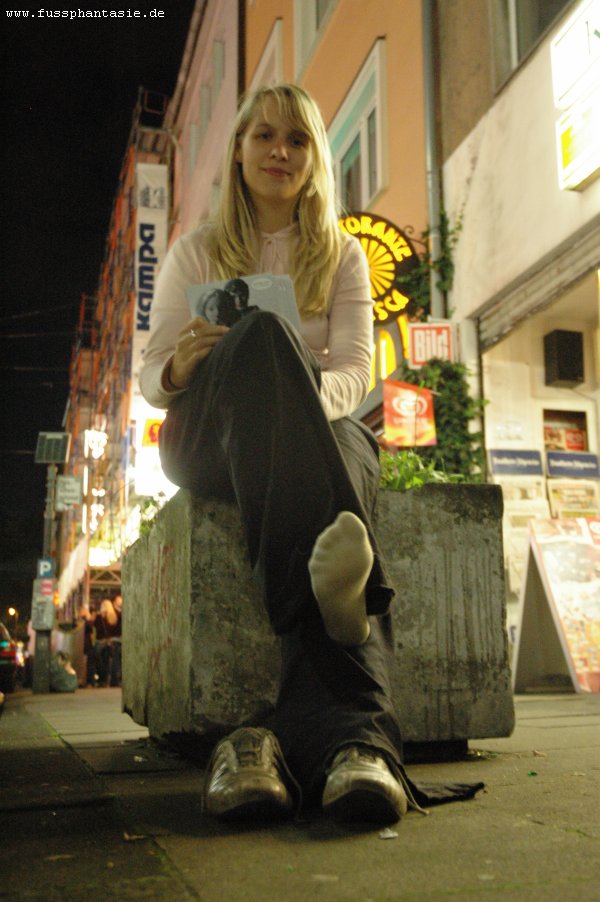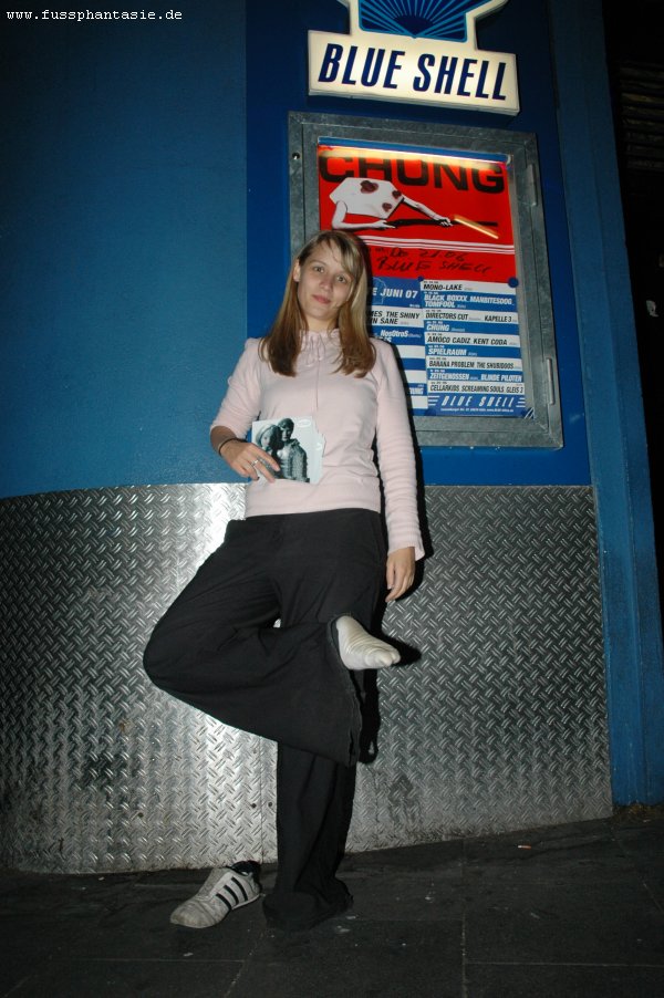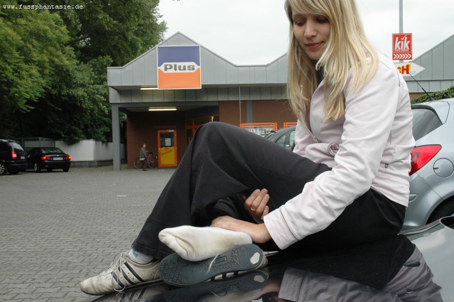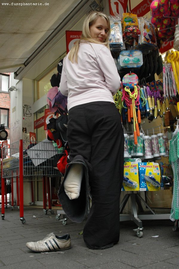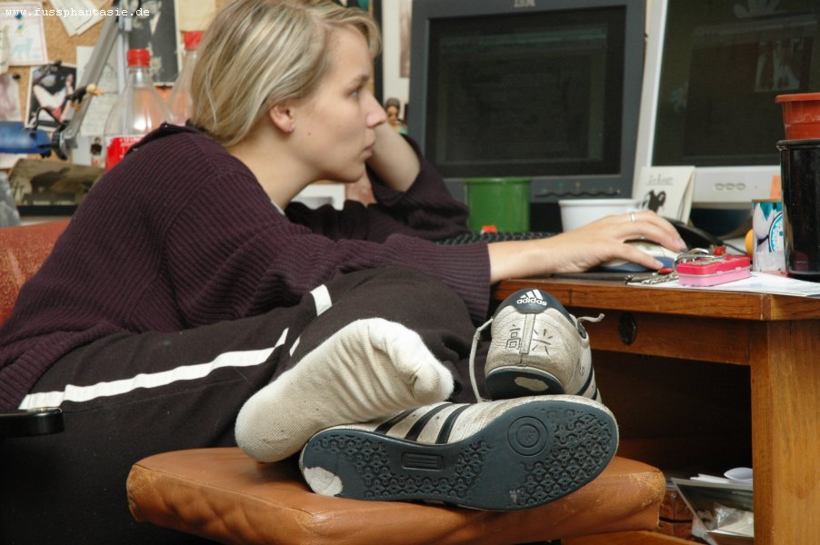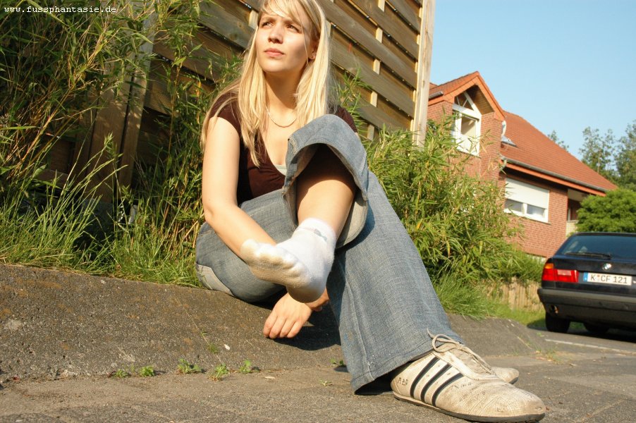 trägt sie natürlich die socken, im übrigen ausschließlich in den adidas-schuhen - projekt sei dank. euch noch nen