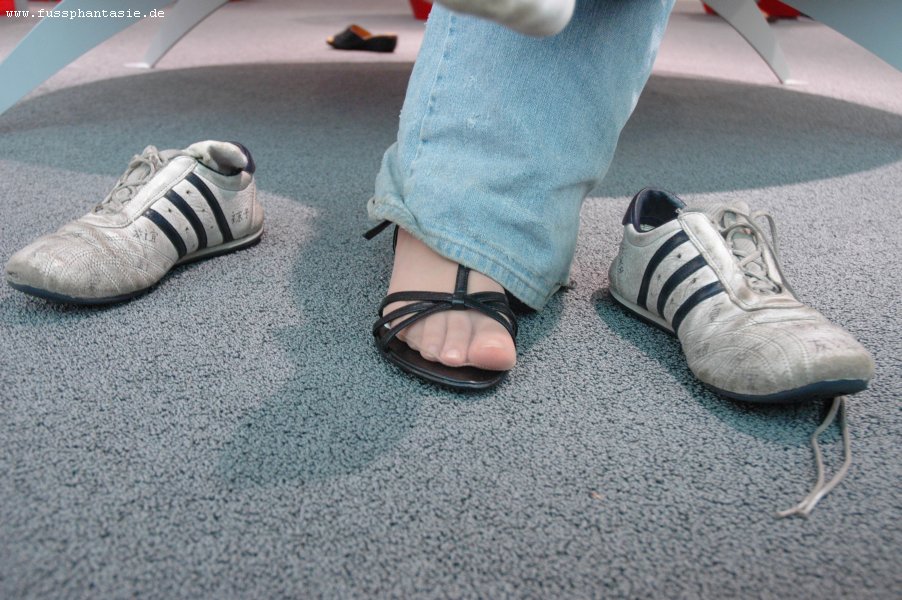 leisten, wenn es darum geht, nach schuhen zu gucken. wir haben die anprobe von riemchensandalen unerlaubterweise in einem