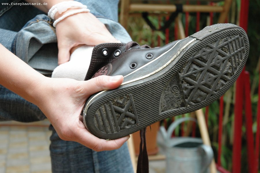 festivalandenkenruth trägt in ihrer ersten serie gleich richtig dick auf: sie war am wochenende auf einem festival, samt regen, schlamm und dixie-klos. von dort hat sie uns auch etwas mitgebracht, nämlich den schlamm an ihren braunen lederchucks. mitsamt ihren weißen socken ergibt das ein nettes szenario, welches so manches herz höher schlagen lassen dürfte! diese serie vom 27.08.2008 enthält 72 aufnahmen. die ersten sechs bilder könnt ihr vergrößern. die restlichen fotos gibt es entweder auf CD oder als zip-datei zum download im shop.