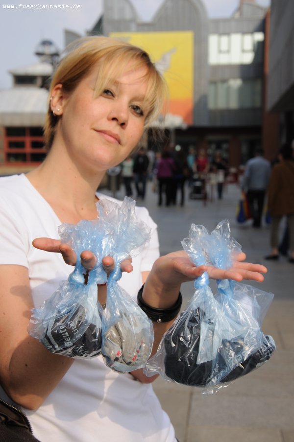 fremde socken - teil dreilaute rufe und wir haben sie erhört! am heutigen tag hat uns der liebe gott sonniges und warmes wetter beschert, so daß astrid und ich am kölner rheinufer entlanggelaufen sind und für einen von euch insgesamt sechs paar socken gesammelt haben. wir haben die socken vor ort eingetütet und natürlich bekamen die frauen von uns im gegenzug ein neues paar socken geschenkt :-) an dieser stelle nochmal einen herzlichen dank an die mädels! ![]() diese serie vom 06.04.2009 enthält 70 aufnahmen. die ersten sechs bilder könnt ihr vergrößern. die restlichen fotos gibt es entweder auf CD oder als zip-datei zum download im shop.