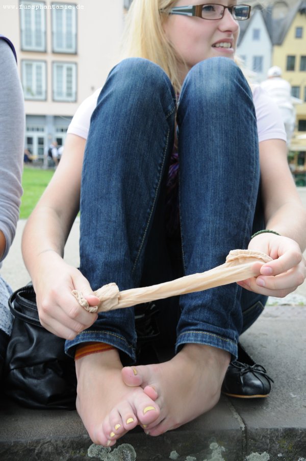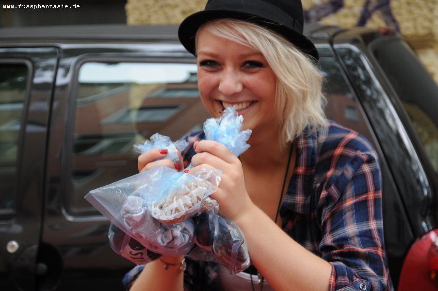 fremde socken - teil fünfauch in diesem jahr gibt es wieder einmal die große sammelaktion! dina und ich sind heute bei 25 grad und sonne am rhein entlangspaziert und haben diesmal sieben paar socken für euch organisiert. nebenbei sind wir auch vom WDR gefilmt worden, aber das ist eine andere geschichte... :D natürlich wird das ganze paket auch diesmal wieder an den höchstbietenden versteigert. es besteht aus zwei paar nylonsöckchen, einmal schwarz, bunt gestreift, gepunktet, grau und dann noch blaue sneakersocken von puma. an der stelle wieder einmal vielen lieben dank an die frauen! ![]() herzlichen glückwunsch und vielen dank! diese serie vom 28.07.2011 enthält 52 aufnahmen. die ersten sechs bilder könnt ihr vergrößern. die restlichen fotos gibt es entweder auf CD oder als zip-datei zum download im shop.