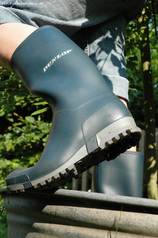 gummi, garten und das girlein fan von fp.de hatte sich mal ne serie mit gummistiefeln und nackten füßen gewünscht, und da jutta zufällig ein paar alte blaue dunlops im keller stehen hatte, haben wir letztens die sonnigen tage genutzt und ein paar schöne fotos gemacht. zwar sieht man die füße durch das gummi nicht wirklich, aber man kann erahnen, wie sie darin geschwitzt haben. dazu kam, daß jutta die stiefel schon den halben tag angehabt hatte. mit anderen worten: das war eine wirklich feucht-fröhliche fotosession :-) diese serie vom 30.06.2007 enthält 78 aufnahmen. die ersten sechs bilder könnt ihr vergrößern. die restlichen fotos gibt es entweder auf CD oder als zip-datei zum download im shop.