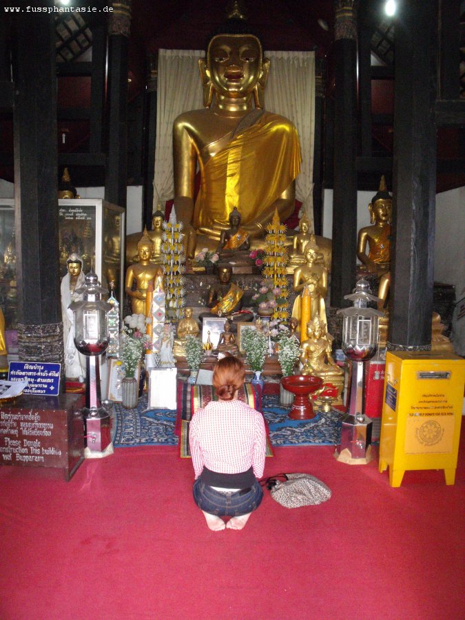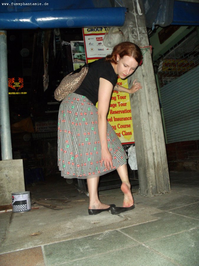 ilsas thailand-tagebuchfussphantasie goes abroad! ilsa fliegt für die nächsten zwei wochen nach thailand und wird von dort aus ein tagebuch führen. das wird nicht einfach nur ein tagebuch, nein, ilsa wird zwei wochen lang ihre alten schwarzen ballerinas tragen und euch jeden tag neue fotos und einen kurzen bericht von der reise schicken. kurz vor ende der reise starten wir dann eine auktion, wo ihr die ballerinas und die fotos ersteigern könnt. viel spaß! 30.09.2012 ![]() ![]() Mein letzter Tag, mein letzter Abend! Noch ein wenig Sightseeing, eine kleine Massage, ein letztes Mal die kulinarischen Lekkereien genossen und die letzten paar Mitbringsel besorgt. Jetzt bin ich soweit...mehr oder weniger. Es geht wieder nach Hause. Dies waren die vorerst letzten Sonnenstrahlen. Vermutlich kann ich mich daheim direkt wieder in die Winterjacke hüllen. Aber so ist es halt, auch die schönste Zeit geht vorrüber und vermutlich wäre Urlaub generell auch nur halb so schön wenn es nichts Besonderes wäre... kleine Inseln der Entspannung in einem Meer aus Stress, welchen der Alltag nunmal leider so mit sich bringt... Was bleibt sind ein paar sehr schöne Erinnerungen und Eindrücke...neben einigen neuen Klamotten ;0) Ausserdem war es eine sehr schöne Erfahrung dieses Reisetagebuch zu schreiben. Ich hätte nicht erwartet soviel positives Feddback zu bekommen. Dafür vielen Dank an alle, die eifrig mitverfolgt haben was ich hier täglich so zum Besten gegeben habe. Macht es gut! Vielleicht bekommt der ein oder andere ja mal demnächst wieder Post von mir nach Hause :0) Ich bin gespannt bei wem von euch meine Schätzchen ein neues zu Hause finden werden. Seid gut zu Ihnen! Sie haben es verdient! LG eure Ilsa 29.09.2012 ![]() ![]() ![]() Und am Wochenende gibt es viiieeeel zu tun. Heute habe ich mir den Weekend-Market hier vorgenommen.... Holla die Waldfee!!! Ich bin ja doch recht stressresistent, was Shoppen angeht und zwäng mich noch durch das dichteste Gedränge wenn ich die verhoffte Beute in Aussicht gestellt bekomme... Aber das heute war echt hardcore.... Es war quasi ein Labyrinth aus Geschäften .... Bis hierhin: easy...aber...das ganze war überdacht!!! Und nach ca 30 Minuten war meiner Meinung nach der komplette Sauerstoff schon verbraucht....das vernebelt einem die Sinne, da muss man aufpassen, dass man nicht etwas kauft, was sich bei späterer, nüchterner Betrachtung als Fehleinschätzung entpuppt... Jedenfalls bin ich auf meiner Flucht in Richtung grelles Licht am Ende des Tunnels noch falsch abgebogen und bei den Haustieren gelandet. Das war dann wirklich übel!!! Betäubte Eichhörnchen, die in ach wie lustige Kostüme gesteckt werden, stehen dort zum Verkauf, ebenso wie etliche andere Tiere ( angeblich auch Affen)... Davon angewidert, hab ich dann umgehend das Weite gesucht. Da merkt man dann doch wieder, dass man weit weg von daheim ist... Danach habe ich den Tag eher ruhig verbracht. Ein paar Tempel, gutes Essen und zum Abschluss noch ein paar Drinks... Ich mag gar nicht daran denken wie kalt es in Deutschland ist wenn ich wiederkomme...schnief! Bis dahin Lg eure ilsa 28.09.2012 ![]() ![]() Mein heutiges Highlight war definitiv der Abend oder die Nacht... Hier in der Khao San Road kommt man sehr schnell mit anderen Backpackern ins Gespräch und tauscht sich darüber aus, was man unbedingt gemacht oder gesehen haben sollte...Heute bekam ich den Tip mir die Teddy Ska Band anzusehen, in einem Club gleich hier in der Straße . Die scheinen schon seit Jahren regelmäßig hier zu spielen. Ist jetzt eigentlich nicht so unbedingt mein Ding aber warum nicht?!?! Gesagt, getan! Ich habe so einen unglaublichen Spaß gehabt ...Das wirklich tolle war, dass im Grunde nur Thais dort waren, also "Touri-freie-Zone". Und im Feiern macht den Thais definitiv niemand so schnell was vor!!! So ausgelassen und ohne jeglichen Stress sieht man das in Deutschland doch leider eher selten. Wenn einen das nicht mitreisst vom Hocker auf die Tanzfläche zu hechten, dann ist echt Hopfen und Malz verloren. Die Musik war noch nicht einmal wer weiß wie toll aber bei der Stimmung war das irgendwie Nebensache. JEDER hat getanzt als gäbe es kein Morgen... oder keine Sitzgelegenheiten. Jedenfalls bin ich völligst erledigt und habe mir fast die Füße blutig getanzt...Wenn ich mir doch bloß meine Fußbekleidung nicht immer nach der Optik aussuchen würde, sondern nach Tragekomfort... ein Hoch auf Schuhe mit Fußbett!! Aber es ist ja nur noch ein Wochenende... und das werde ich voll ausnutzen...Danach dürft ihr euch dann mit meinen Schätzchen vergnügen ;0) Lieber Alexx...Vielleicht muss ich die Ballerinas ja schlussendlich auch selbst ersteigern weil ich nach diesem Urlaub entsetzt feststelle, dass ich sie gar nicht mehr hergeben kann, wo doch so viele schöne Erinnerungen daran hängen ;0) Kommt gut ins Wochenende... eure Ilsa 27.09.2012 ![]() ![]() ![]() So, genug Meer! Ich musste dringend wohin wo ich shoppen kann. Ich bin quasi auf Entzug! Noch ein paar Tage und ich hätte vermutlich sogar so eine blöde Hängematte oder anderen Souvenier-Scheiß gekauft. Bloß nicht! Ich muss mir meinen Platz im Rucksack schliesslich für wichtigere Einkäufe aufheben...Und so konnte ich einfach nicht anders als mich nach meiner Ankunft straight in die nächste Shopping Mall zu begeben. Das MBK ist ja meiner Meinung nach total überbewertet, aber die Platinum Fashion Mall....Heaven, i´m in heaven.... Das Ergebnis könnt ihr ja selbst sehen. Dem aufmerksamen Beobachter mag aufgefallen sein, dss keinerlei Schuhe dabei sind...Richtig, nix gefunden! Entweder die Schuhe sahen furchtbar aus oder waren nicht mehr in meiner Größe da. Schnief!!! Ein Paar sehr schöne Leo High Heels gab es in der Ladyboy Abteilung...die fingen dann aber erst bei 42 an...wie gemein...Aber noch ist ja nicht aller Tage Abend. Ich bin ja erstmal so richtig warm gelaufen. Da wird sich schon noch das ein oder andere Paar finden lassen... Und da so ein Sh