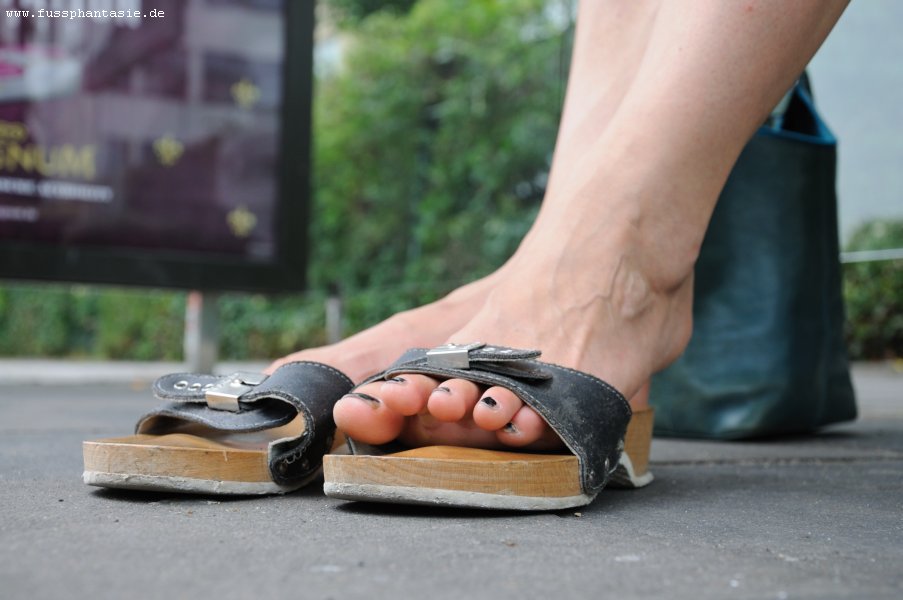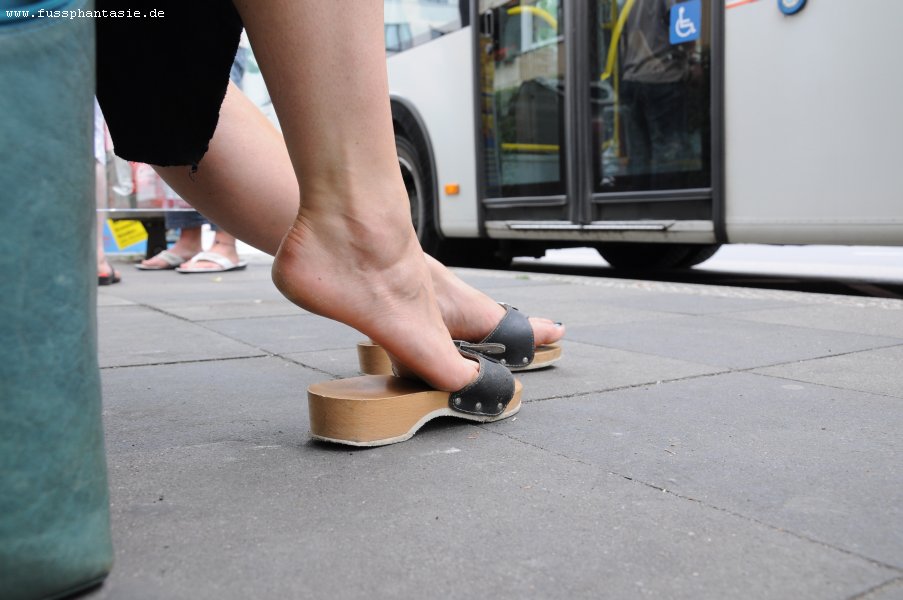 mit pantoletten unterwegsvor einiger zeit war ich bei julie kaffee trinken und sie hat mir in genau diesem outfit die türe aufgemacht. ich bin fast in ohnmacht gefallen und letzlich auf knien gerutscht, damit julie mir diese fotoserie schenkt. gesagt, getan - ein paar wochen vergingen und dann sind wir losgezogen. holzpantoletten von scholl, ein schwarzer rock und dazu unverschämt aufregend abgewetzte blaue socken. als julie dann noch wie marylin monroe posierte, war es um mich geschehen... nein, nicht ganz so krass, aber das war ein highlight. am schluß ist julie dann noch in den bus gestiegen. warum sie aber wieder ausstieg, verrate ich hier nicht, jedenfalls war der busfahrer ziemlich irritiert :D diese serie vom 17.07.2009 enthält 114 aufnahmen. die ersten sechs bilder könnt ihr vergrößern. die restlichen fotos gibt es entweder auf CD oder als zip-datei zum download im shop.