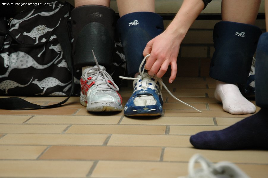 oberaußemer volleyballfüßewie oft habe ich schon geschichten darüber gelesen, daß sich manche männer wünschen, einmal in einer damenumkleide nach einem volleyballspiel den frauen zu füßen zu liegen... und da heidi und elaine zufällig volleyball spielen, haben sie für mich kurzerhand einen fototermin organisiert, so einfach kann das leben sein :-) zwar haben die damen des OVV II leider knapp gegen fortuna bonn verloren, aber die trauer war schnell verflogen, denn die stimmung in der umkleide war wirklich erste klasse. vielen dank liebe alex, anna, barbara, elaine, heidi, inka, judith, katrin, kerstin, rena und verena, ihr wart großartig! und natürlich auch einen dank an bina für die mentale unterstützung! als bonus gibt es diesmal übrigens 12 anstatt 6 bilder in der vorschau! diese serie vom 28.01.2006 enthält 92 aufnahmen. die ersten zwölf bilder könnt ihr vergrößern. die restlichen fotos gibt es entweder auf CD oder als zip-datei zum download im shop.