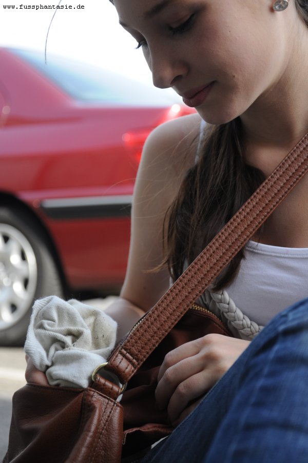 ruckediguh, ein stein ist im schuhkennt ihr das auch? ihr geht einkaufen und seht dann die witzigsten und unterhaltsamsten dinge, die man sich als fußfreund nur vorstellen kann. zum beispiel das gedankenverliebte shoeplay an der kasse, oder aber, wie in janas fall, daß sie gleich barfuß in den REWE geht, nachdem sie sich vor dem laden die schuhe und socken ausgezogen hat, weil ein steinchen im schuh war und es zudem einfach sehr heiß gewesen ist. und dann stellt euch vor, jana steht vor euch in der kassenschlange und ihr wisst, daß ihre getragenen socken in der tasche stecken... :D diese serie vom 23.08.2011 enthält 106 aufnahmen. die ersten acht bilder könnt ihr vergrößern. die restlichen fotos gibt es entweder auf CD oder als zip-datei zum download im shop.