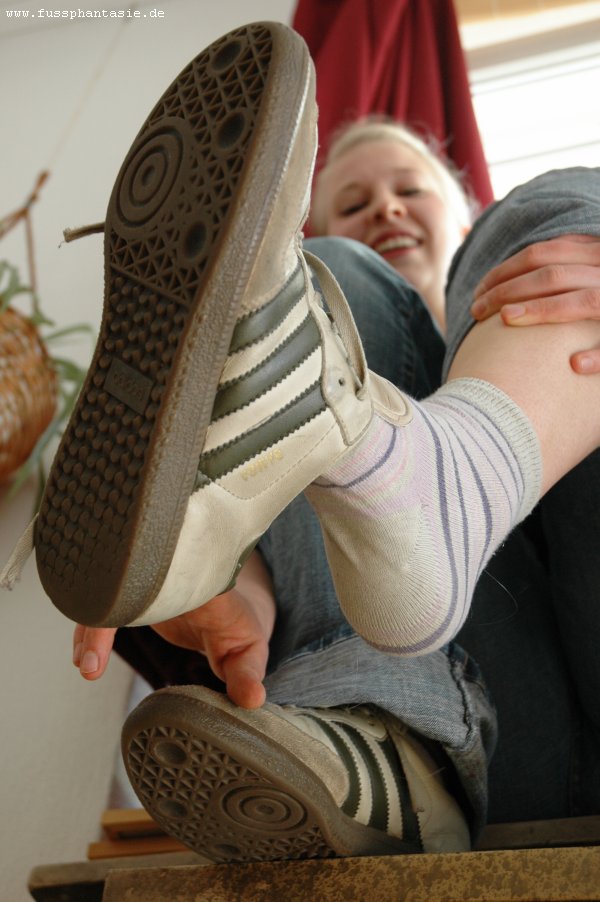 wildes treibenso manchmal wünsche ich mir wirklich eine kamera, die hundert bilder pro sekunde macht... was rieke und eva-maria in ihrer ersten serie veranstaltet haben, hat selbst mich an die grenzen des möglichen gebracht. die beiden legten ein unglaubliches tempo vor und haben nicht nur lasziv für die kamera posiert, sondern sich auch packende fußkämpfe geliefert und sich gegenseitig mit spontanen ideen übertrumpft. von barfuß- und sockenfotos, bis hin zu chucks, sambas und asics ist alles dabei. diese serie vom 08.06.2006 enthält 102 aufnahmen. die ersten sechs bilder könnt ihr vergrößern. die restlichen fotos gibt es entweder auf CD oder als zip-datei zum download im shop.